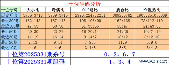 枚举三个位第2025331期杀号:0、5、7、9