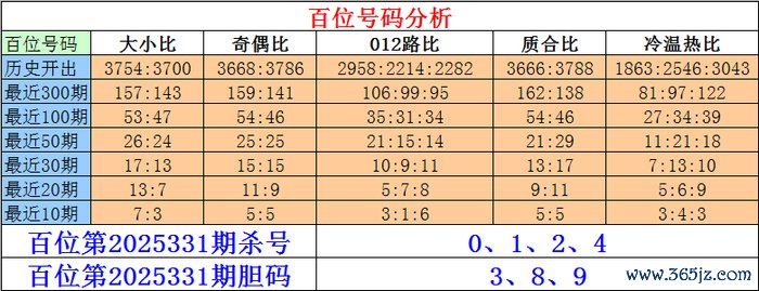 枚举三百位第2025331期杀号:0、1、2、4